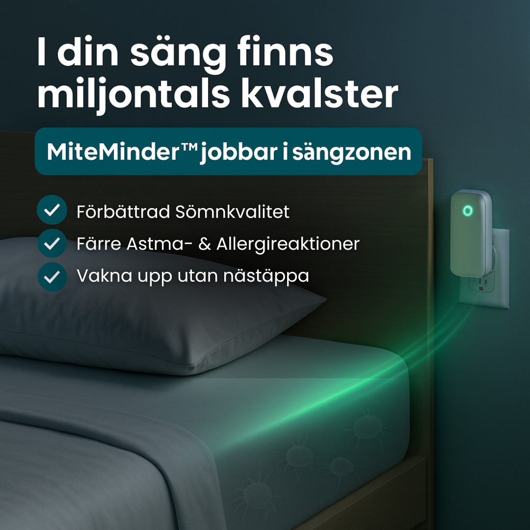 Upptäck en ny era av skonsam och naturlig lindring med MiteMinder™ – ett enkelt och säkert sätt att minska kvalstren och förbättra din vardag.